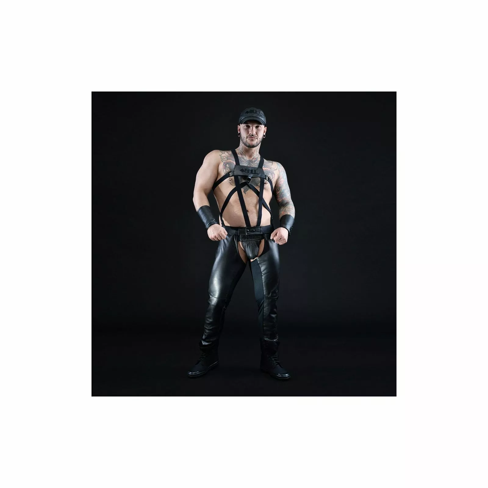 Composition: cuir, polyester, élasthanne.