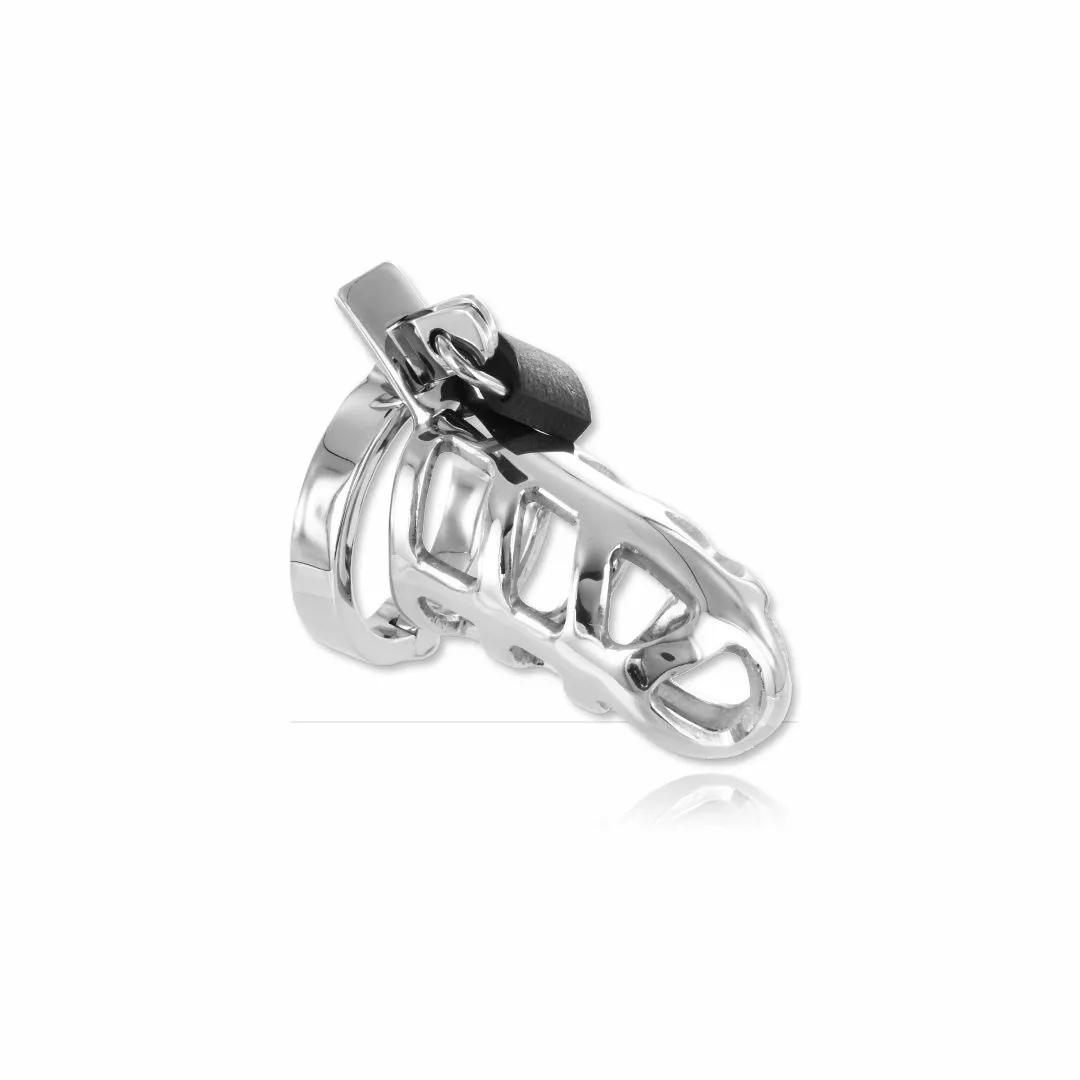 Une fois le pénis et les testicules bien rangés dans notre dispositif de chasteté, tu peux poser le cadenas fourni